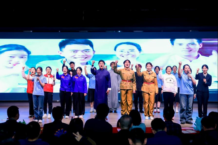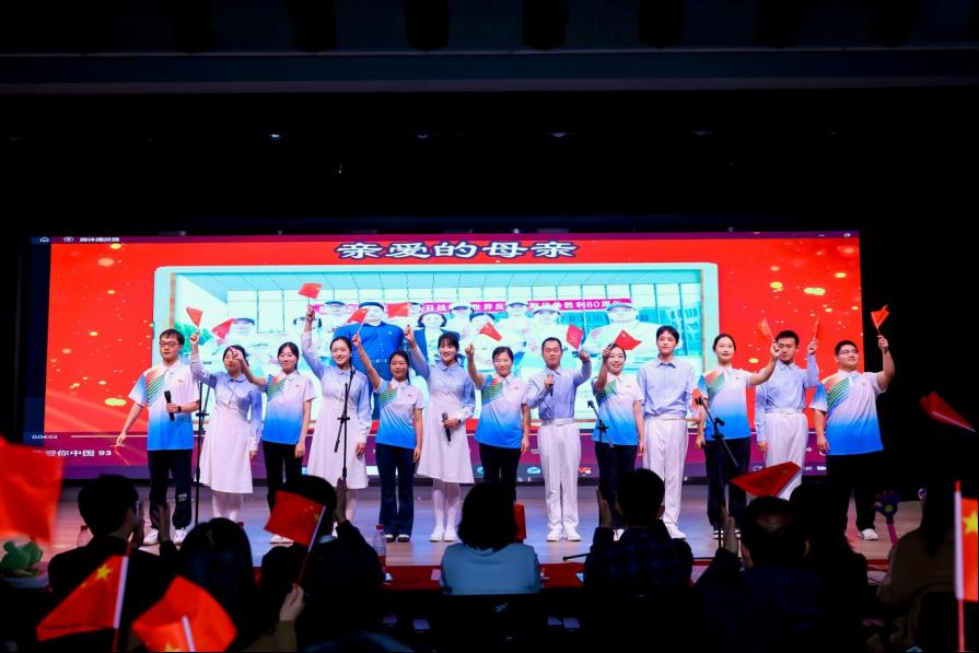 由参加九三纪念大会的广场合唱与专项志愿者师生共同呈现的音诗画《八十载回响·青春颂家园》,在师生深情的朗诵中,再次回顾难忘的志愿服务经历,共同弘扬伟大的抗战精神;在《我爱你中国》的旋律中,全场师生挥舞国旗共同合唱,将现场推向了高潮。