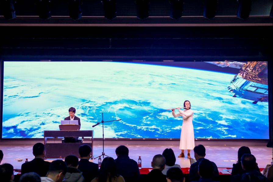 随后,王范一麟和连艺睿同学联袂献上器乐演奏《Earth》。音符如清风拂过原野,旋律如溪流汇入江海,两种乐器深情对话,勾勒出世界的辽阔与生命的壮美,引领观众沉浸于天地之间的宁静与悸动。