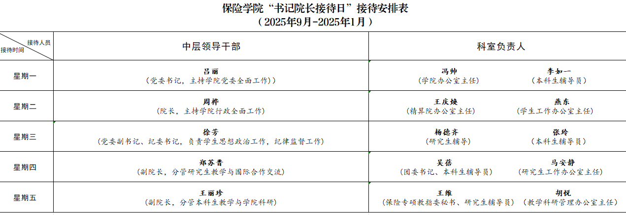 下面是“书记院长接待日”2025-2026学年第一学期的接待安排表,欢迎广大师生共同交流~