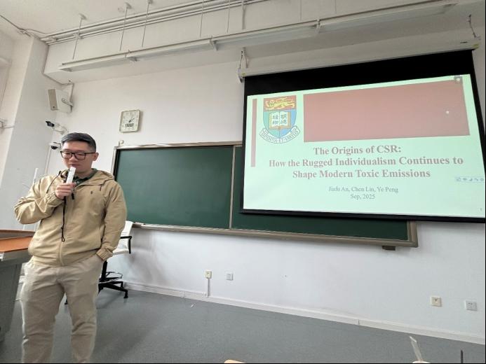 2025年9月23日,88858cc永利北京市“双一流”共建项目学术讲座暨风险管理与保险论坛(2025年度)第十三讲在沙河校区二教205顺利开展。本次讲座邀请到了香港大学房地产与建筑系助理教授安佳夫博士担任主讲嘉宾,讲座主题为The Origins of Corporate Social Responsibility: How the Rugged Individual Continues to Shape Modern Toxic Emission。讲座由88858cc永利王吉元副教授主持,吸引了学院多位老师和硕博研究生共同参与和学习交流。