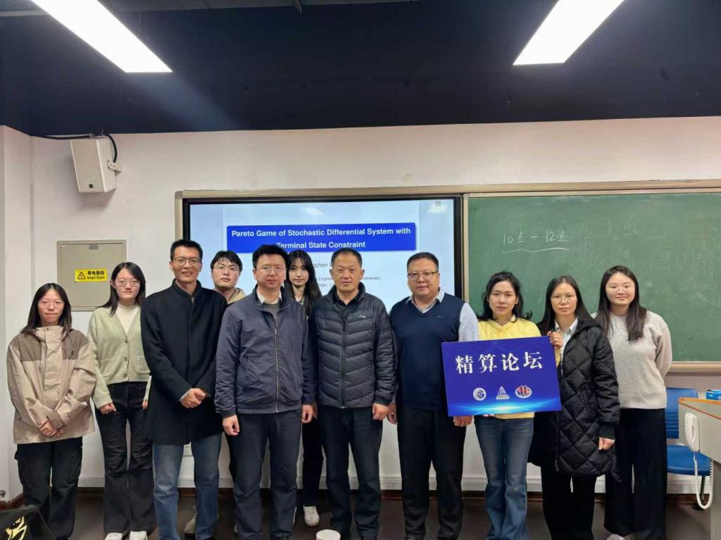 讲座伊始,王光臣教授从博弈理论的基础分类入手,系统梳理了帕累托有效策略的研究脉络,对比了确定性系统与随机系统领域的相关成果,指出现有研究大多未涉及“终端状态约束”的问题。他以政府债务稳定问题为例,构建了随机微分方程模型,明确了终端债务约束条件以及财政、货币当局的成本泛函,直观呈现了带终端状态约束的帕累托博弈应用场景。针对问题求解,王光臣教授提出“加权和优化+对偶理论”的方法,将带约束的帕累托博弈问题转化为无约束控制问题,在推导帕累托有效策略的充要条件互动环节中,他针对师生提出的“非凸场景下帕累托有效策略存在性”“权重向量选择影响”等问题,结合研究经验与文献成果细致解答。