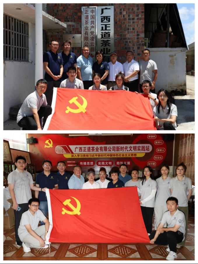 7月26日上午,调研团队一行前往广西正道茶业有限公司调研并与正道茶业有限公司党支部联合开展“党建引领茶产业发展,校企共建促乡村振兴”为主题的联学共建活动。调研团队通过实地参观茶叶加工全过程、调研生产和销售情况、座谈凌云白毫茶产业发展规划,以党学联建凝聚乡村振兴合力。