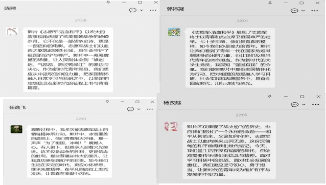 观影结束后,支部第一时间开展“红色影评线上展示”活动,号召党员撰写观后感和红色寄语等多种形式表达观影感悟,分享心得体会。党员们踊跃参与,纷纷通过线上平台投稿,以真挚的文字抒怀赤诚之心,以动人的绘画展现时代精神,汇聚成献礼祖国华诞的青春篇章。有的同志在影评中赞颂志愿军战士舍生忘死的英雄气概,表达对今天幸福生活的倍加珍惜;有的用画笔生动描绘出志愿军将士浴血奋战的英勇身姿,立志传承先辈精神、接续奋斗荣光。支部精选优秀作品进行了线上展示,引发热烈反响。通过文字与创意作品的交流,党员们加深了对革命历史的思考与感悟,更加坚定了传承红色基因、矢志报国奉献的信念。